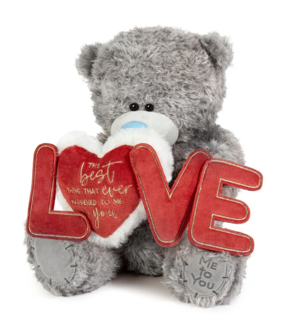 Το μήνυμα στο λούτρινο αναγράφει «The best thing that ever happened to me is you» («Το καλύτερο πράγμα που μου συνέβη ποτέ είσαι εσύ») και είναι κεντημένο με χρυσή κλωστή, προσθέτοντας μια λαμπερή, ρομαντική πινελιά. Το αρκουδάκι Tatty Teddy έχει ύψος 27 εκ.