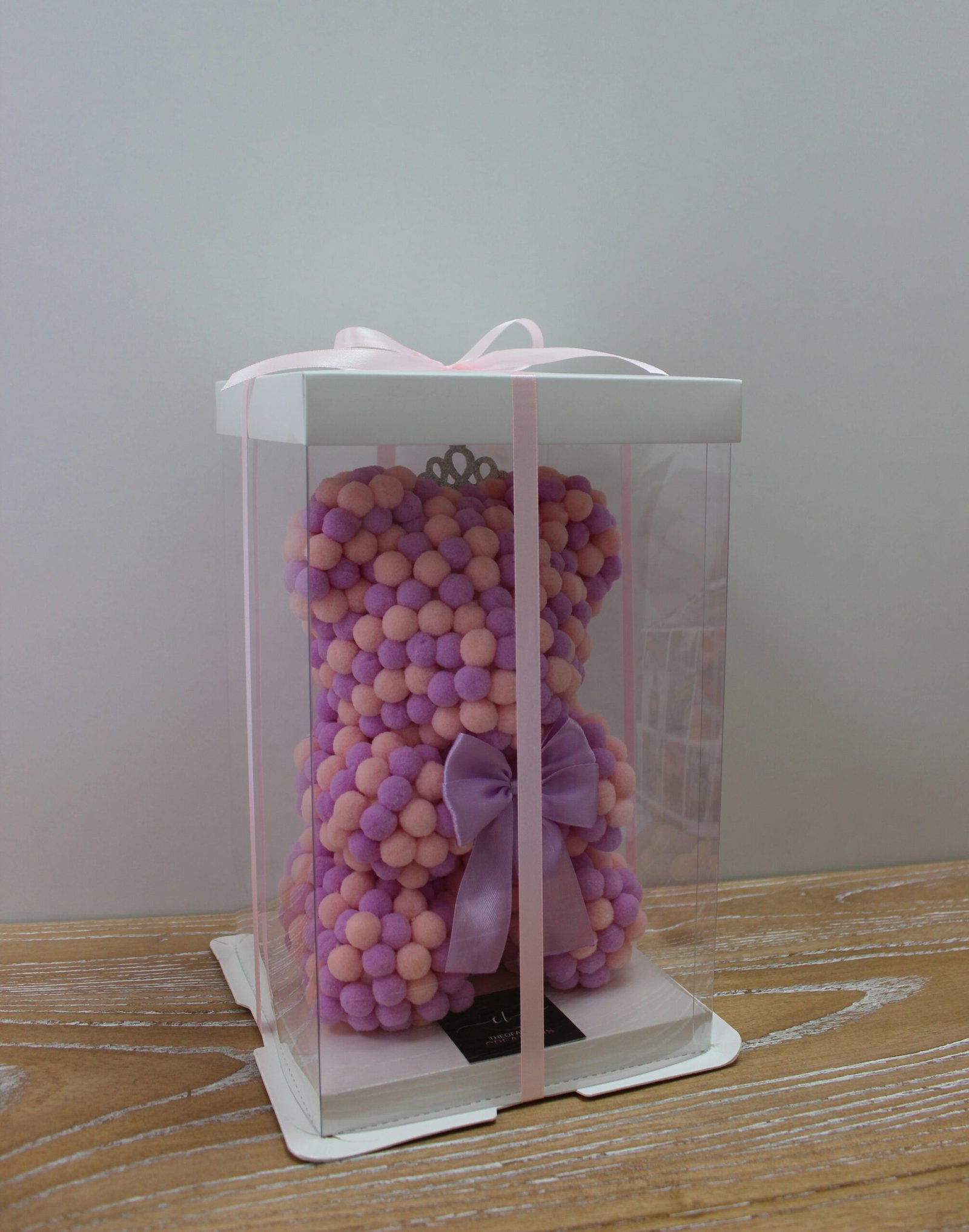 Το Pom-Pom Teddy Bear ξεχωρίζει για την απαλή υφή, τα παστέλ χρώματα και τον ρομαντικό φιόγκο, αποτελώντας μια ξεχωριστή διακοσμητική και δωροεπιλογή.