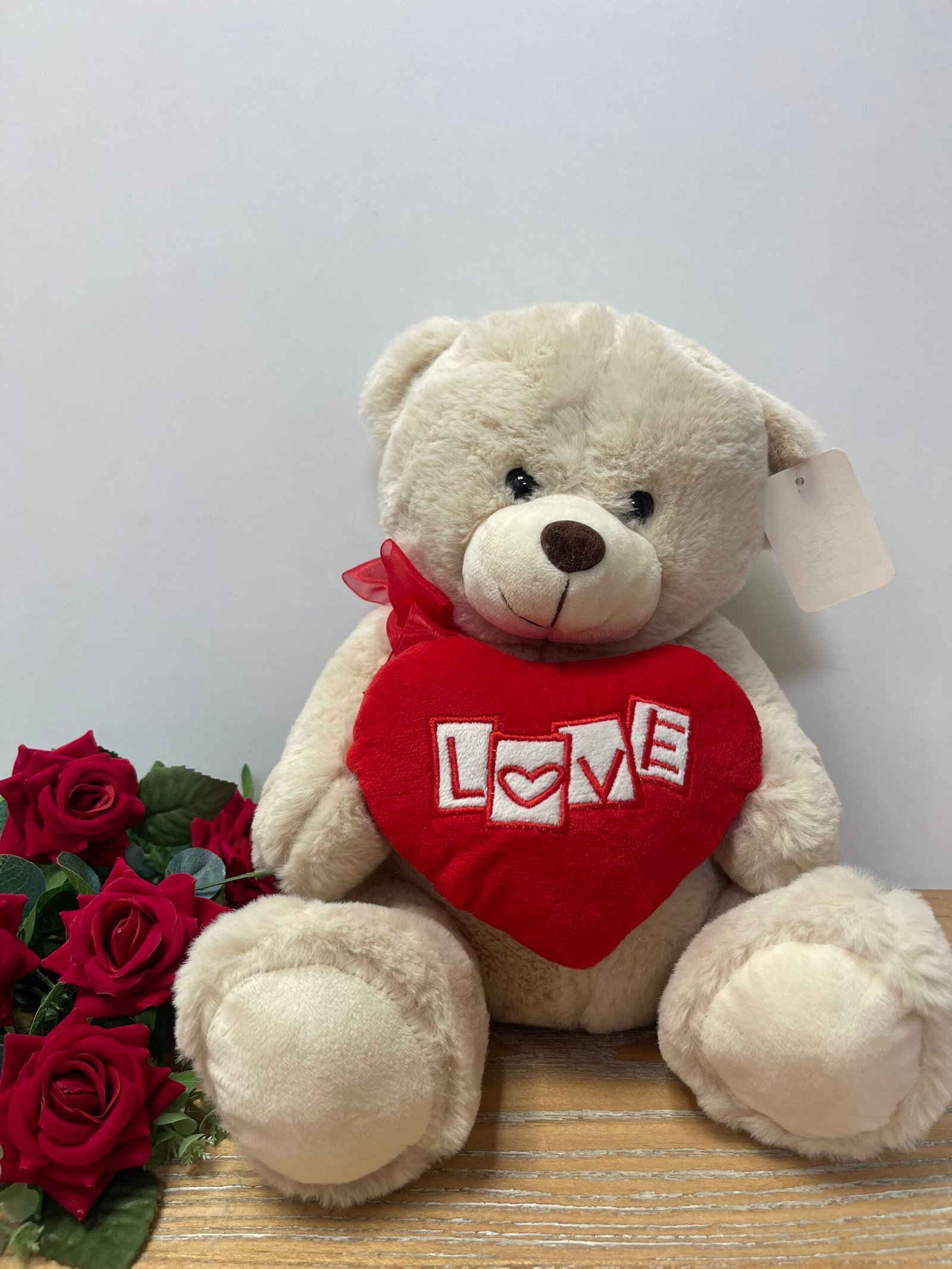 Ένα γλυκό και απαλό αρκουδάκι που κρατά μια κόκκινη λούτρινη καρδιά με τη λέξη «LOVE», σύμβολο αγάπης και τρυφερότητας. Ένα κλασικό και διαχρονικό δώρο που εκφράζει συναισθήματα με απλότητα και ζεστασιά, ιδανικό για επετείους, την Ημέρα του Αγίου Βαλεντίνου, γενέθλια ή για να πείτε «σ’ αγαπώ» οποιαδήποτε στιγμή.